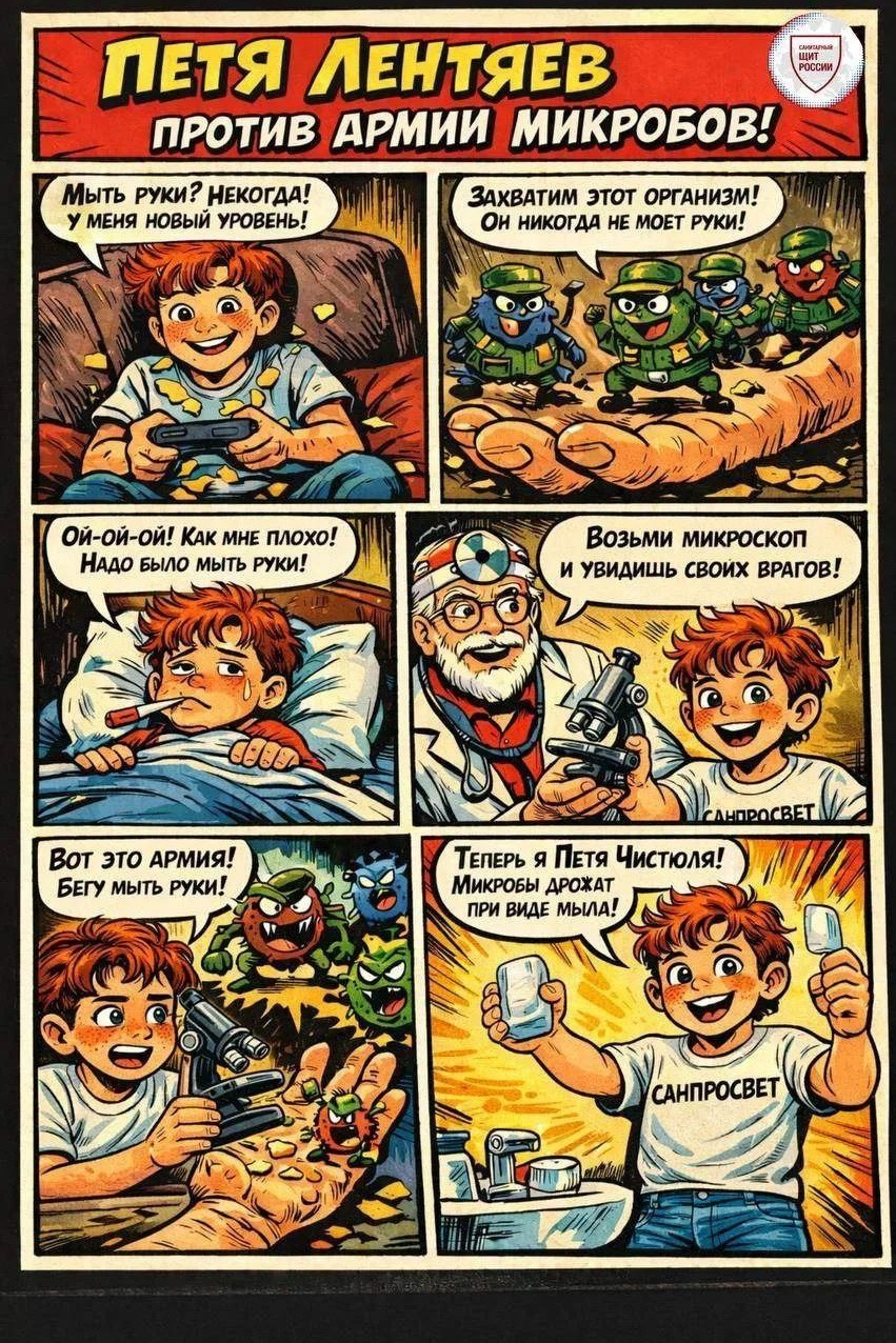Помогите Пете победить микробов и станьте настоящими защитниками здоровья вместе с проектом «Санпросвет» Роспотребнадзора!